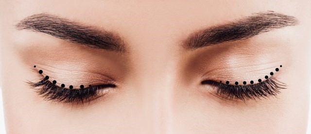 Para los puntos, ayúdate de un pincel de punta fina. Marca ligeramente los puntos según el recorrido que desees y posteriormente, únelos con delineador. Cuantos más puntos hagas, más fácil te resultará.