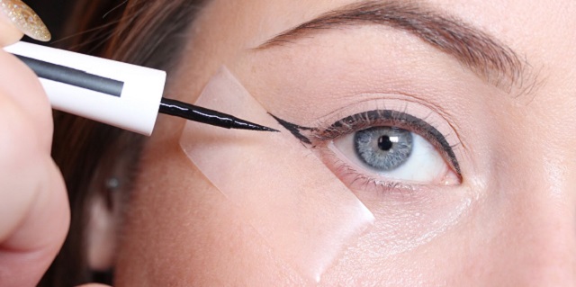 Podemos hacer una variante del truco anterior con cualquier cinta adhesiva. Esta técnica puede ser aún más efectiva ya que se hace una “plantilla” para todo el delineado del ojo. Usa este truco si deseas un acabado más grueso y anguloso.
