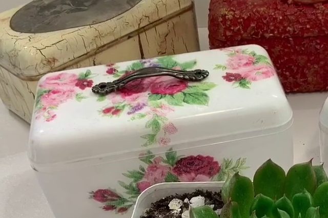 Cómo reutilizar una caja de plástico con decoupage
